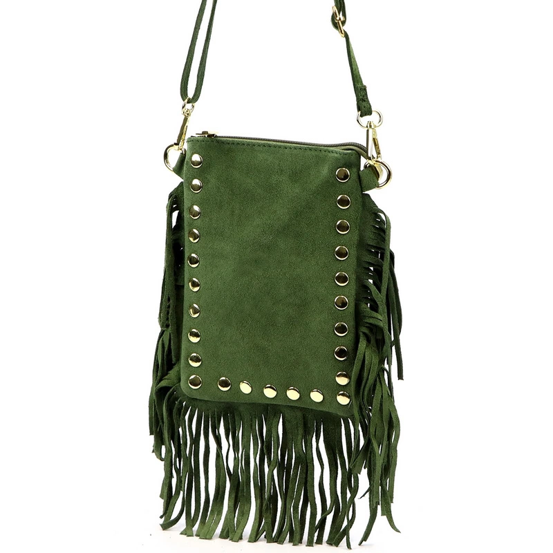 Mała damska listonoszka z frędzlami i dżetami mała torebka na ramię Luka