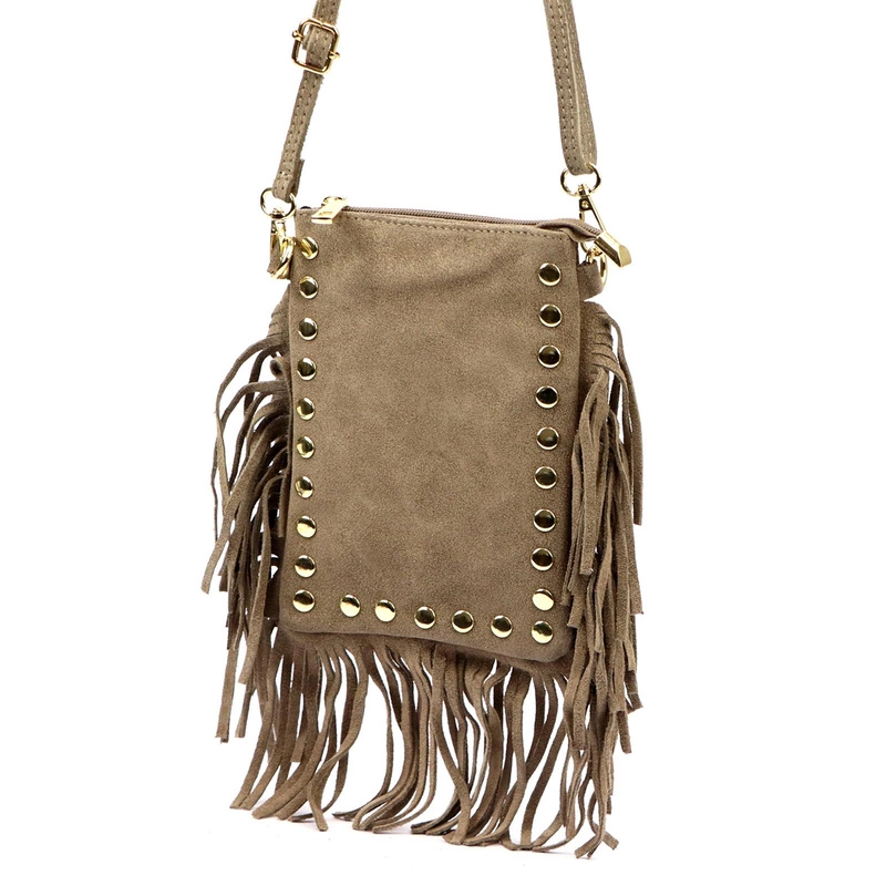 Mała damska listonoszka z frędzlami i dżetami mała torebka na ramię Luka