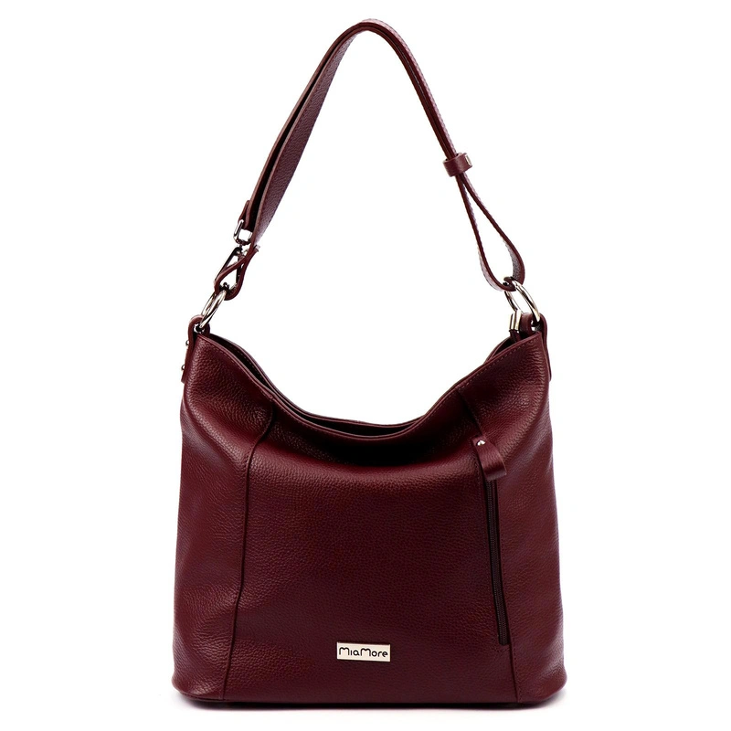 Fason w typie shopperbag, który mieści format A4, przez co sprawdzi się zarówno na co dzień, jak i do biura. Staranne wykonanie z wysokogatunkowej skóry naturalnej o doskonałej jakości. Na gładkiej fakturze bez wzoru, umieszczone zostało logo producenta MiaMore w srebrnym okuciu. Torebka zapinana na zamek błyskawiczny, co gwarantuje wygodę, podczas użytkowania.