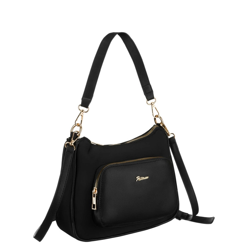 Torebka Peterson to połączenie ponadczasowego stylu z praktycznym podejściem do codziennych potrzeb. Niewielka, a jednocześnie pojemna – sprawdzi się zarówno w pracy, na spacerze, jak i podczas wyjścia ze znajomymi. Została uszyta z wytrzymałego nylonu i wzbogacona elementami z wysokiej jakości skóry ekologicznej. Delikatne złote okucia podkreślają jej szykowny charakter, a klasyczny design pasuje zarówno do eleganckich, jak i casualowych stylizacji.