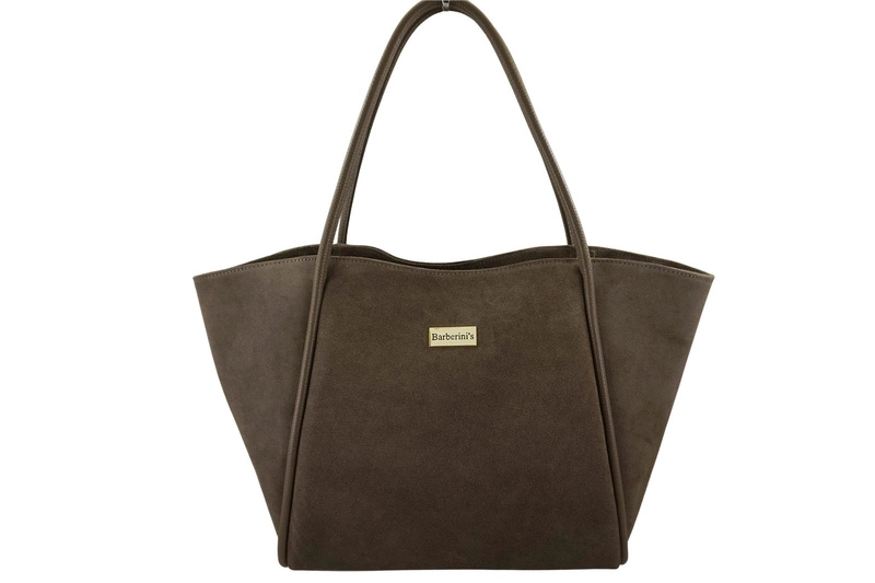 Barberinis - torebka duża zamszowa na ramię w kolorze ciemnego beżu jest wykonana ze skóry naturalnej. Elegancka i funkcjonalna torebka duża zamszowa na ramię to idealny wybór dla kobiet ceniących klasyczny styl i wygodę na co dzień. Wykonana z wysokiej jakości naturalnego zamszu, zachwyca miękkością i wykonaniem z dbałością o szczegóły. Delikatne złote okucia nadają całości eleganckiego charakteru, a klasyczny kształt sprawia, że torebka doskonale komponuje się z wieloma stylizacjami – od casualowych po bardziej formalne. Torebka jest pojemna – bez problemu mieści format A4, dzięki czemu sprawdzi się zarówno w pracy, jak i podczas zakupów czy spotkań w mieście.