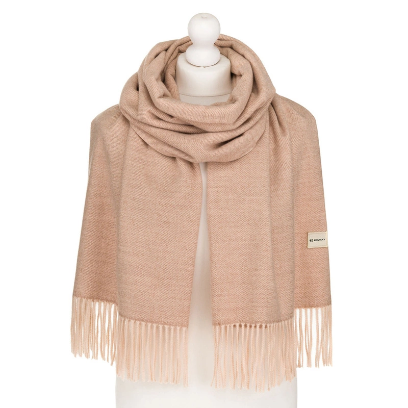 Beżowy szal damski z poliestru i wiskozy ozdobiony frędzlami - Rovicky