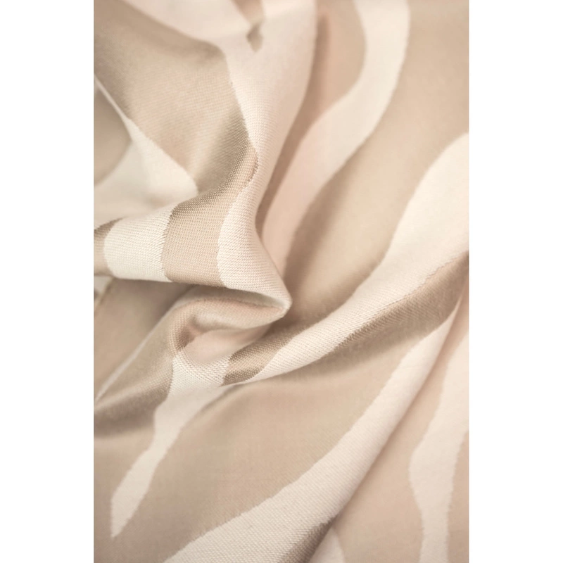 Satynowa, połyskująca nitka przeplata się z cieplejszą, przyjemną w dotyku tkaniną, tworząc eleganckie połączenie komfortu i efektownego wyglądu.