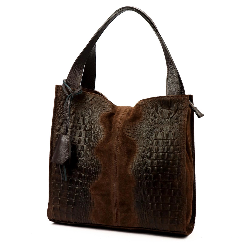 Vera Pelle shopperbag skórzana wzór skóra krokodyla torebka na ramię