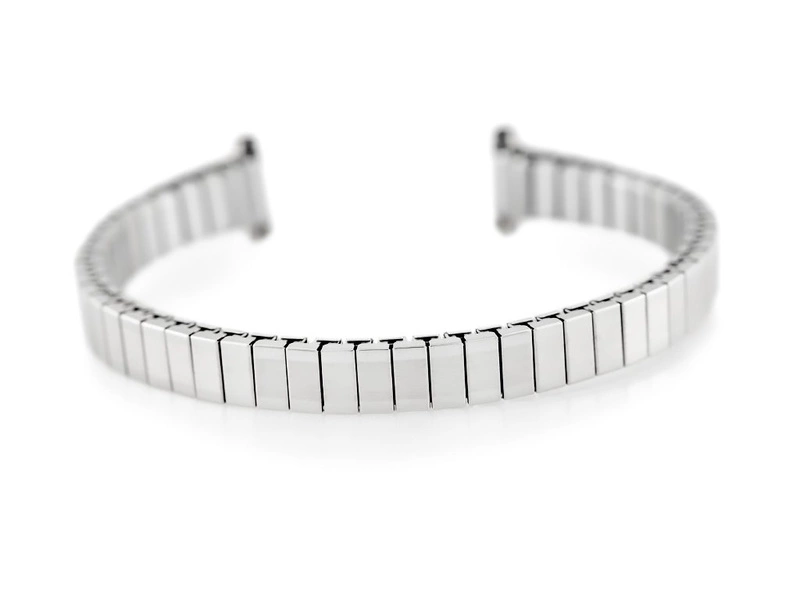Metalowa bransoletka wysokiej jakości w kolorze srebrnym z możliwością rozciągnięcia oraz z regulacją szerokości mocowania.