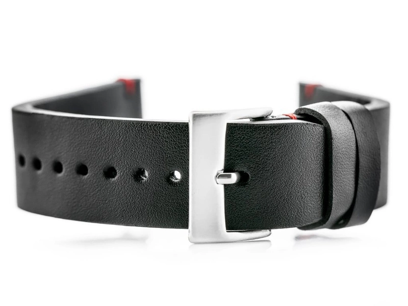 Pasek skórzany do zegarka W118 - czarny/czerwone - 20mm