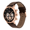 Zegarek męski TOMMY HILFIGER 1710566 Legend to nowoczesny i elegancki model do noszenia na co dzień, jak i na specjalne okazje. Koperta wykonana z wysokiej klasy stali szlachetnej 316L, odpornej na korozję oraz hipoalergicznej w kolorze różowego złota. Na eleganckiej czarnej tarczy, ze szlifem słonecznym znajdują się subtarcze wskazujące: dzień miesiąca, dzień tygodnia oraz czas 24 godzinny. Elegancji dodaję brązowy skórzany pasek. Całość chroniona szkłem mineralnym. Za odmierzanie czasu w zegarku Tommy Hilfiger 1710566 Legend odpowiada mechanizm kwarcowy, który można podglądać przez tarczę typu open-heart. Model 1710565 Legend posiada wodoszczelność na poziomie 5ATM co czyni go w niewielkim stopniu odpornym za wodę. Całość dopracowano w najdrobniejszym szczególe oraz zaprojektowano w zgodzie z aktualnymi trendami w modzie, otrzymując klasyczny, ale jakże elegancki zegarek.