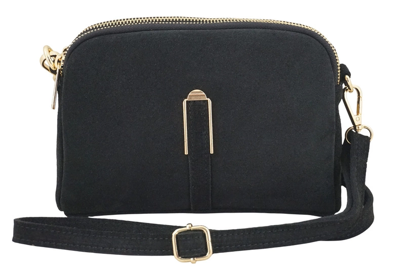 Mała torebka zamszowa wieczorowa w kolorze czarnym została wykonana ze skóry naturalnej. Dodaj szyku każdej stylizacji z tą wyjątkową, skórzaną torebką na ramię. Wykonana z wysokiej jakości skóry zamszowej, zachwyca minimalistycznym designem i subtelną, złotą ozdobą na przodzie, która przyciąga spojrzenia i dodaje luksusowego charakteru. Klasyczny, minimalistyczny design pasujący do wielu stylizacji - mała torebka zamszowa wieczorowa to dodatek, który łączy w sobie elegancję, funkcjonalność i ponadczasowy styl. Stylowa, a zarazem praktyczna – ta torebka to idealny wybór na eleganckie kolacje, przyjęcia czy wieczorne spotkania. Doskonale sprawdzi się o każdej porze roku i w wielu sytuacjach, idealna jako dodatek do casualowych stylizacji.