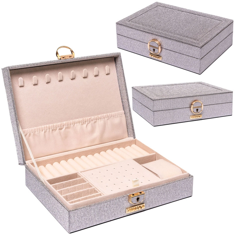 • Przegródki o różnych rozmiarach – idealne na bransoletki, broszki i inne dodatki,