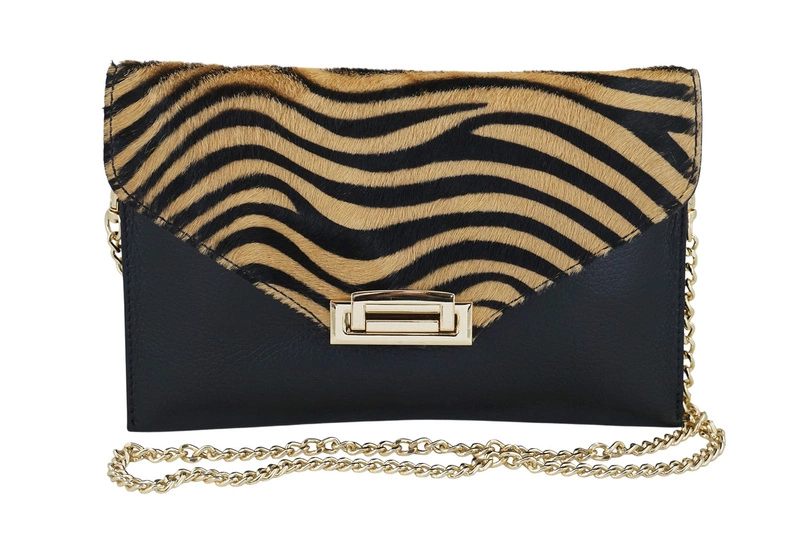 Wieczorowa kopertówka skórzana z modnym printem to idealne połączenie elegancji, nowoczesnego stylu i odrobiny dzikiego uroku. Wykonana z najwyższej jakości skóry naturalnej, zachwyca starannym wykończeniem i efektownym zwierzęcym motywem, który podkreśla indywidualny charakter każdej stylizacji. Wieczorowa kopertówka skórzana z modnym printem to doskonały wybór dla kobiet ceniących modne, ale ponadczasowe dodatki, które wyróżniają się w subtelny, gustowny sposób. Torebka sprawdzi się zarówno jako wieczorowa kopertówka na specjalne okazje, jak i elegancki dodatek wizytowy do spotkań biznesowych czy uroczystych kolacji.