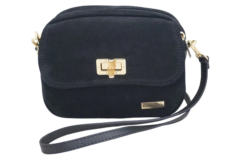 Mała zamszowa listonoszka ze złotym zapięciem - Czarna