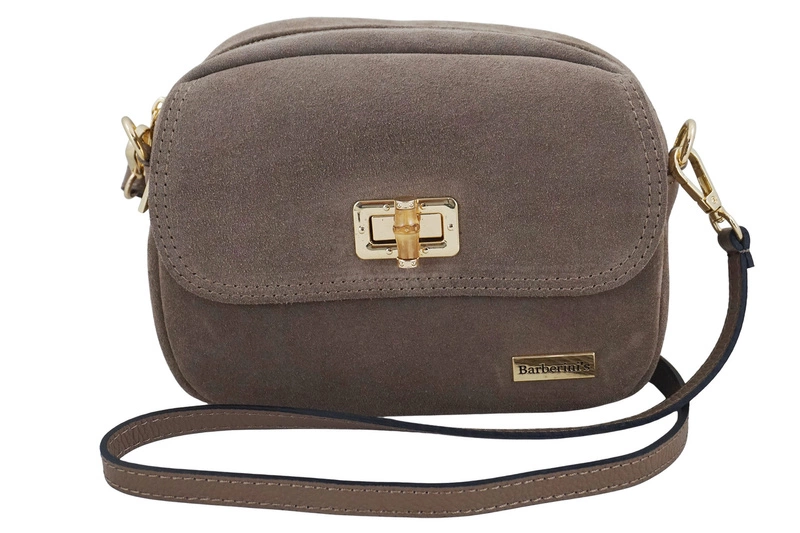 Mała zamszowa listonoszka ze złotym zapięciem - Beżowa ciemna
