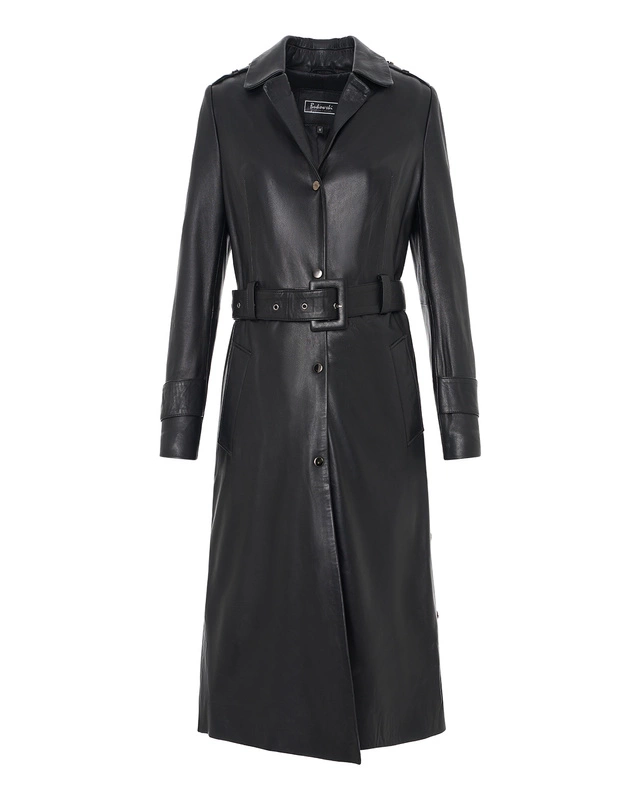 Trencz wykonano w całości z naturalnej skóry najwyższej jakości, która gwarantuje trwałość, komfort oraz wyjątkowy wygląd przez długie lata. Miękka, przyjemna w dotyku skóra pięknie układa się na sylwetce, dodając płaszczowi klasy i lekkości.