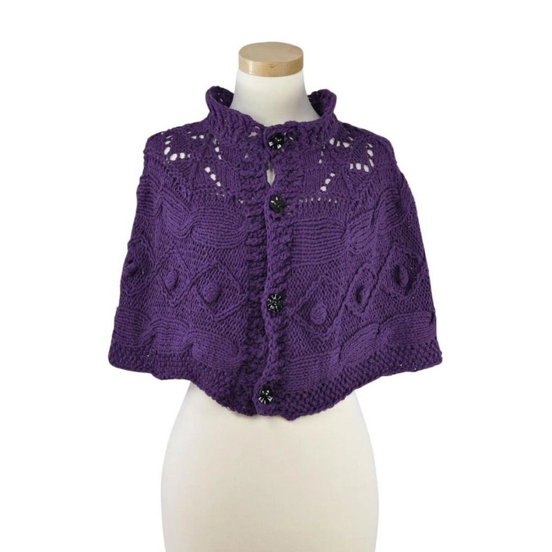 Damskie dziergane bolerko/narzutka zapinane na 4 fasetowane guziczki.