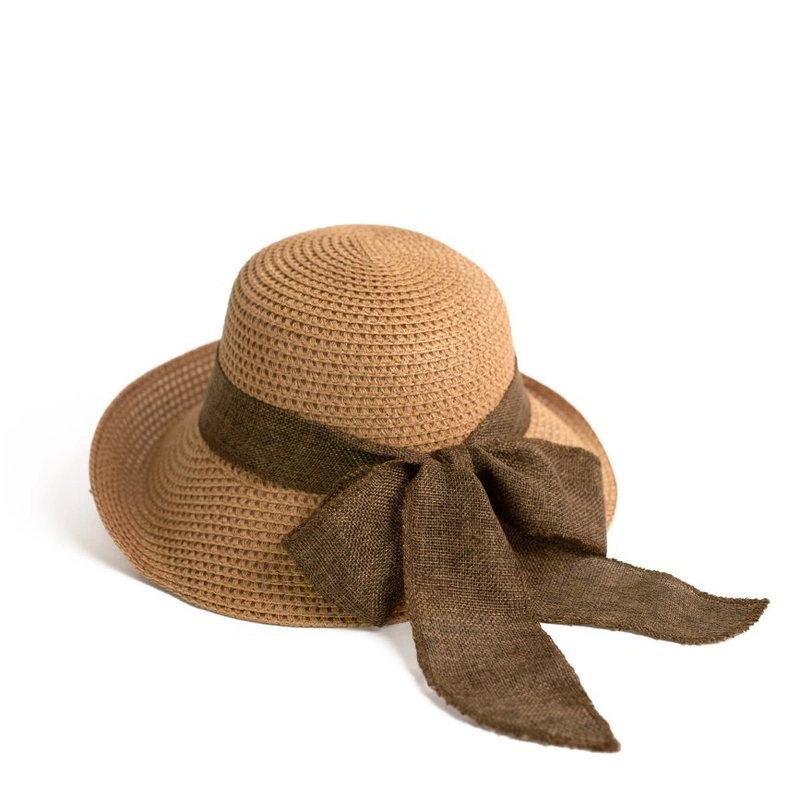 Letni kapelusz przeciwsłoneczny damski typu cloche z małym opadającym rondem.