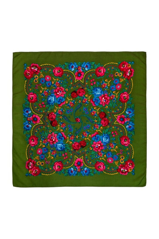 Kwadratowa apaszka w ludowym stylu z motywem kolorowych kwiatów to wyjątkowy, kobiecy dodatek do każdej stylizacji.