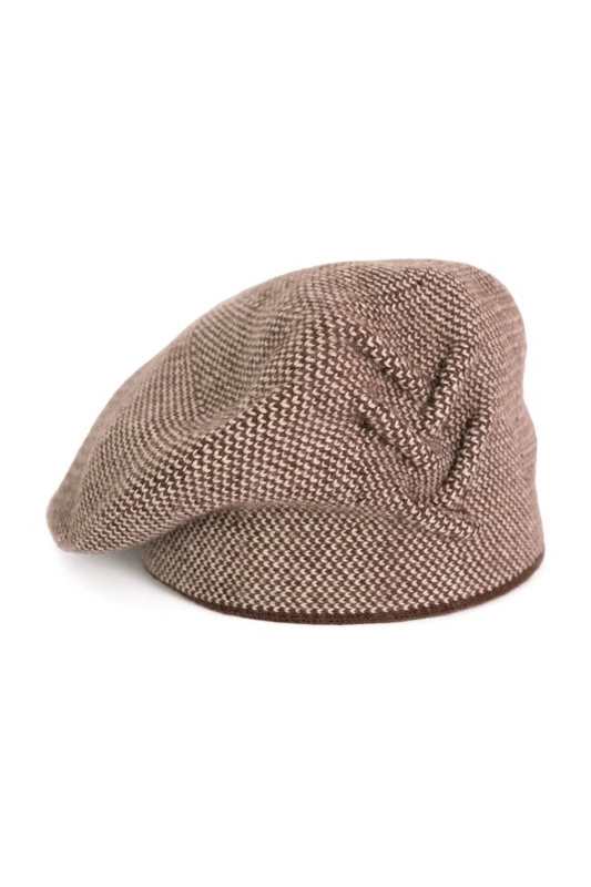 Damski beret o dwukolorowym, drobnym splocie to elegancki i stylowy dodatek na chłodniejsze dni.