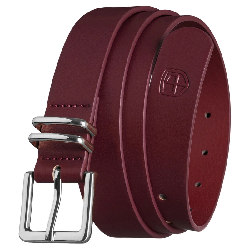 Pasek damski ze skóry ekologicznej w burgundowym kolorze ze srebrną klamrą - Peterson