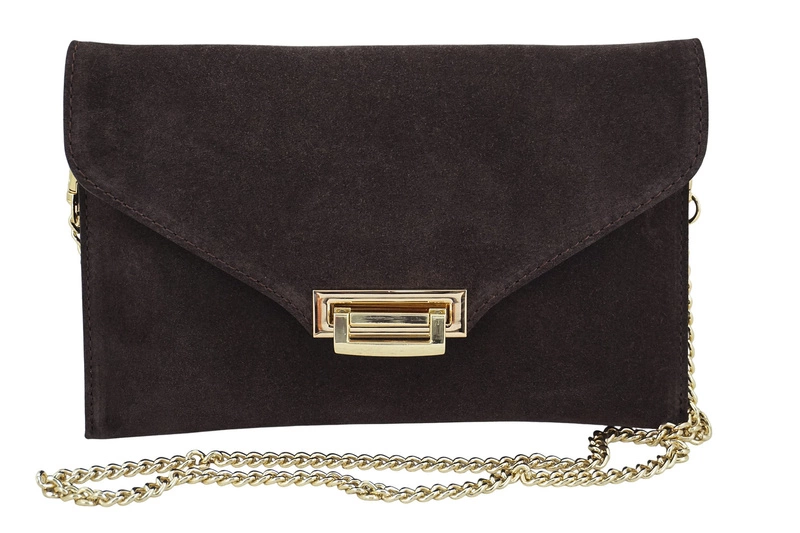 Stylowa kopertówka zamszowa Barberinis w kolorze ciemnego brązu - podkreśl swój styl torebką stworzoną z myślą o kobietach ceniących ponadczasową elegancję i najwyższą jakość wykonania. Modna i kobieca stylowa kopertówka zamszowa Barberinis zachwyca prostotą, a jednocześnie przyciąga uwagę ozdobnym zapięciem i subtelnym złotym łańcuszkiem, który nadaje całości luksusowego charakteru. Klasyczny fason sprawia, że pasuje do każdej stylizacji - zarówno na wieczorne wyjście, romantyczną kolację, jak i uroczyste przyjęcie.