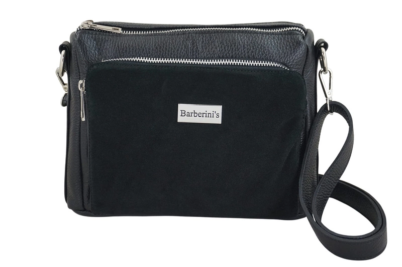 Codzienna torebka ze skóry naturalnej z zamszem - Czarna