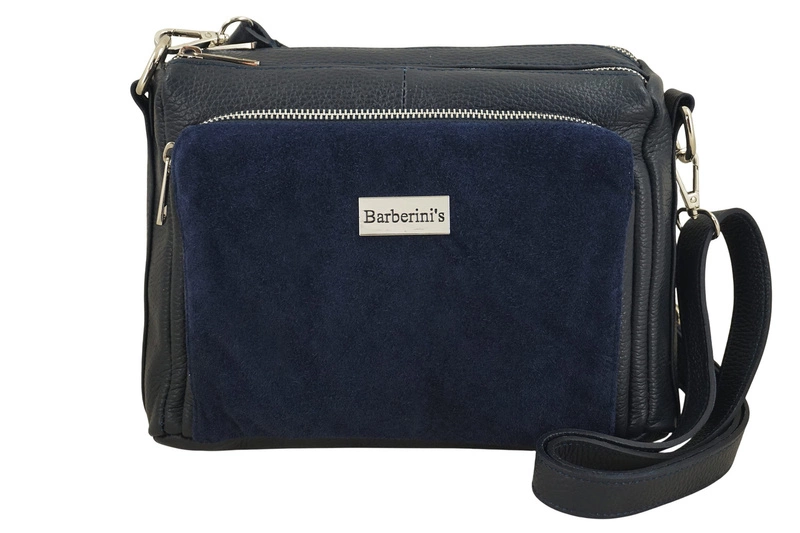 Codzienna torebka ze skóry naturalnej z zamszem - Granatowa