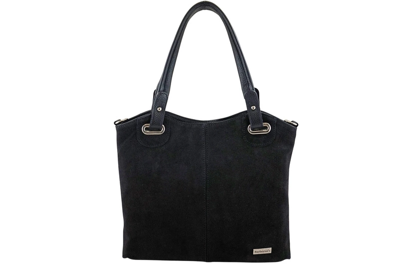 Duża elegancka torebka z naturalnej skóry i zamszu - Czarna