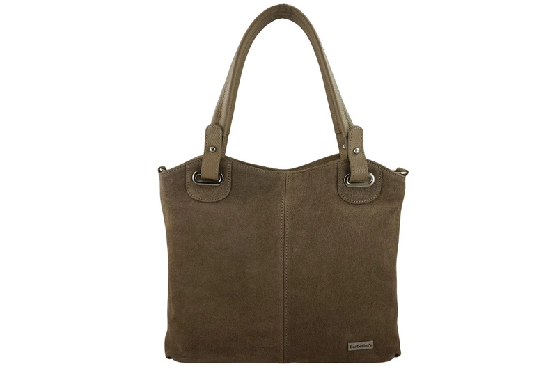 Wnętrze torebki: duża elegancka torebka z naturalnej skóry i zamszu jest wykończona podszewką. Torebka wyposażona jest w dwa solidne uchwyty bez regulacji (dł. 47cm, wys. 20cm, szerokość uchwytów 2,2cm), które umożliwiają wygodne noszenie jej w dłoni lub na ramieniu oraz dodatkowy, regulowany pasek do noszenia przez ramię (maksymalna dł. 120cm, maksymalna wys. 57cm, szerokość paska 1,6cm). Wnętrze zapinane jest na zamek błyskawiczny i oferuje przemyślaną organizację przestrzeni – znajduje się tam duża kieszeń zasuwana, doszyta do spodu, która dzieli wnętrze na pół, mniejsza kieszeń na zamek, a także specjalne miejsce na telefon lub drobiazgi. Dodatkowo na zewnątrz umieszczono praktyczną kieszeń zamykaną na suwak, idealną na klucze lub dokumenty, które warto mieć zawsze pod ręką. Duża elegancka torebka z naturalnej skóry i zamszu dostępna jest w odcieniach, brązu, beżu, bordowego i klasycznej czerni.
