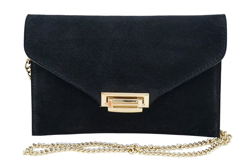 Stylowa kopertówka zamszowa Barberinis w kolorze czarnym - podkreśl swój styl torebką stworzoną z myślą o kobietach ceniących ponadczasową elegancję i najwyższą jakość wykonania. Modna i kobieca stylowa kopertówka zamszowa Barberinis zachwyca prostotą, a jednocześnie przyciąga uwagę ozdobnym zapięciem i subtelnym złotym łańcuszkiem, który nadaje całości luksusowego charakteru. Klasyczny fason sprawia, że pasuje do każdej stylizacji - zarówno na wieczorne wyjście, romantyczną kolację, jak i uroczyste przyjęcie.