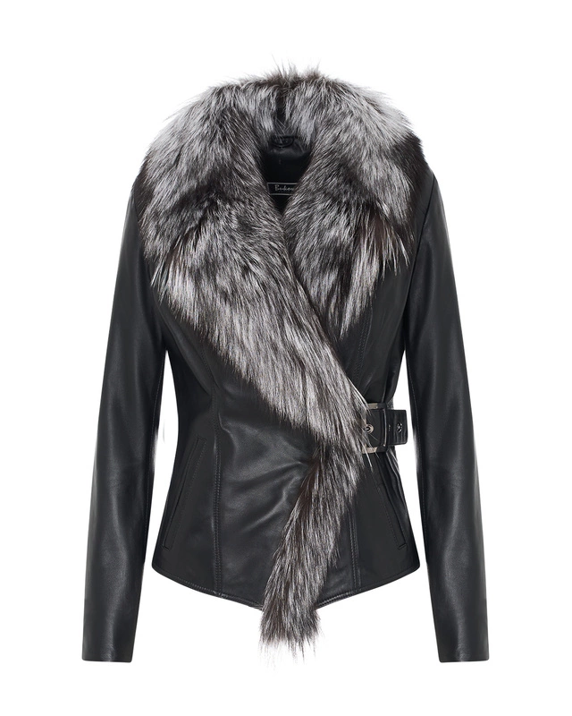 - Czarna kurtka skórzana z lisim futrem to połączenie kobiecości i ponadczasowej elegancji. Dopasowany krój z paskiem w talii podkreśla sylwetkę, a efektowny kołnierz z futra nadaje jej wyjątkowego charakteru. Model, który przyciąga spojrzenia.