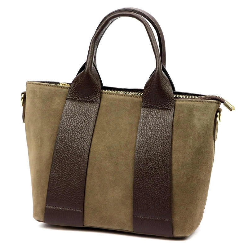 Torebka marki Vera Pelle to wyjątkowe połączenie naturalnej skóry i miękkiego zamszu, tworzące stylowy i ponadczasowy design. Model o średniej wielkości sprawdzi się zarówno na co dzień, jak i w bardziej eleganckich stylizacjach. Złote okucia dodają jej szyku, a przemyślany fason pozwala na noszenie torebki w ręku, na ramieniu lub przy użyciu dopinango, długiego, regulowanego paska.