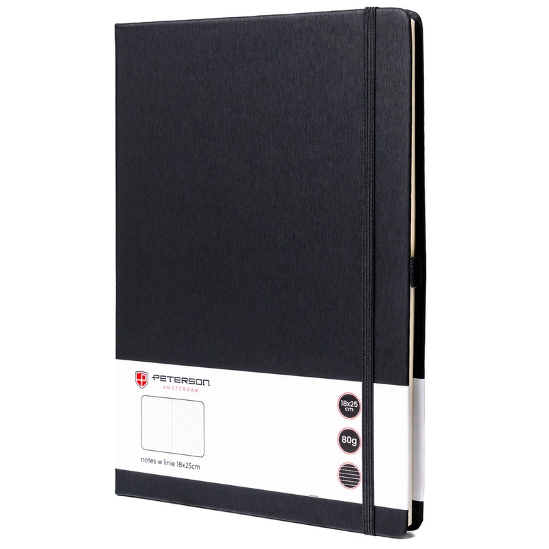 Czarny notes w formacie B5 zadrukowany w linie - Peterson
