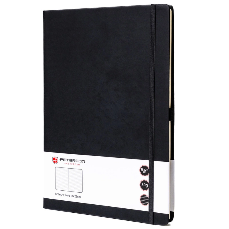 Czarny notes w twardej oprawie formacie B5 zadrukowany w linie - Peterson