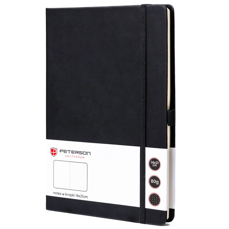 Czarny notes w twardej oprawie formacie A5 zadrukowany w kropki - Peterson