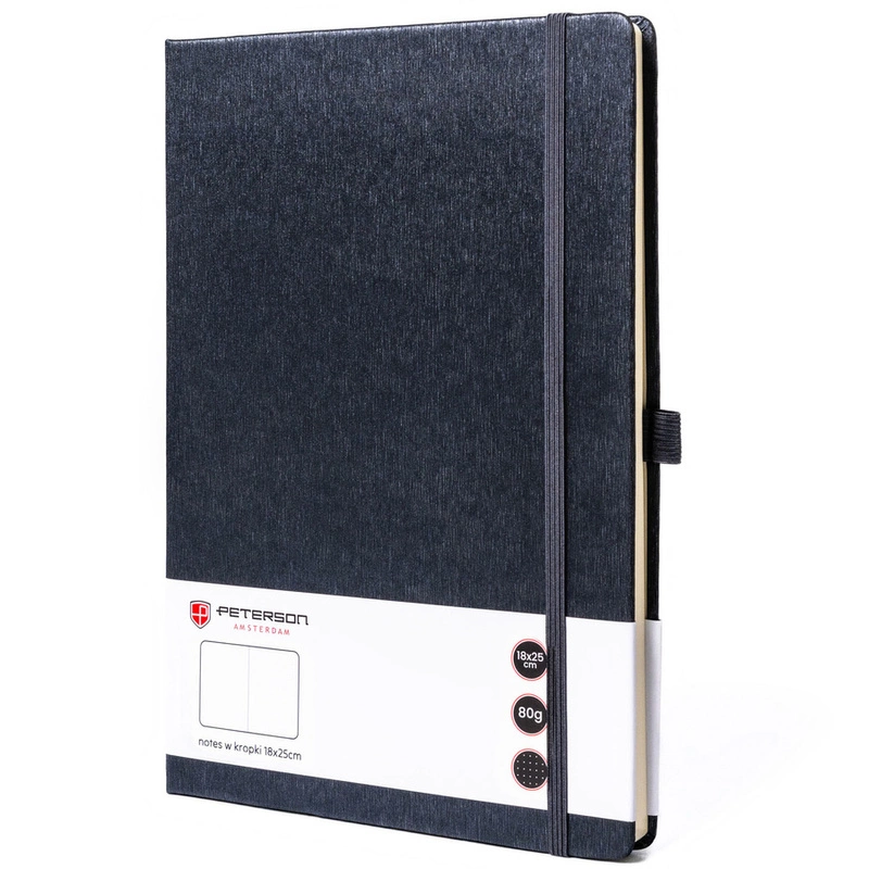 Notes w formacie B5 w szarym kolorze, zadrukowany w kropki i wyposażony w gumkę zamykającą - Peterson