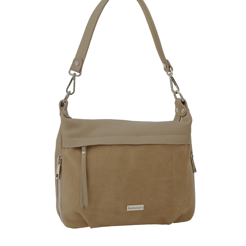 Skórzana torebka z zamszowym akcentem w kolorze beżowym - elegancja i funkcjonalność w jednym. Odkryj idealne połączenie stylu, wygody i praktyczności. Skórzana torebka z zamszowym akcentem to model stworzony dla kobiet ceniących klasykę w nowoczesnym wydaniu. Wykonana z wysokiej jakości skóry naturalnej, z przodem wykończonym miękkim, przyjemnym w dotyku zamszem, prezentuje się elegancko i ponadczasowo. To idealna propozycja zarówno do pracy, na spotkanie, jak i na co dzień – praktyczna, a zarazem pełna elegancji. Elegancka, ale jednocześnie praktyczna skórzana torebka z zamszowym akcentem doskonale sprawdzi się w każdej sytuacji – do pracy, na zakupy, spotkanie z przyjaciółmi czy weekendowy wyjazd. Pięknie komponuje się zarówno z klasycznymi stylizacjami biurowymi, jak i z luźnymi zestawami w stylu casual.