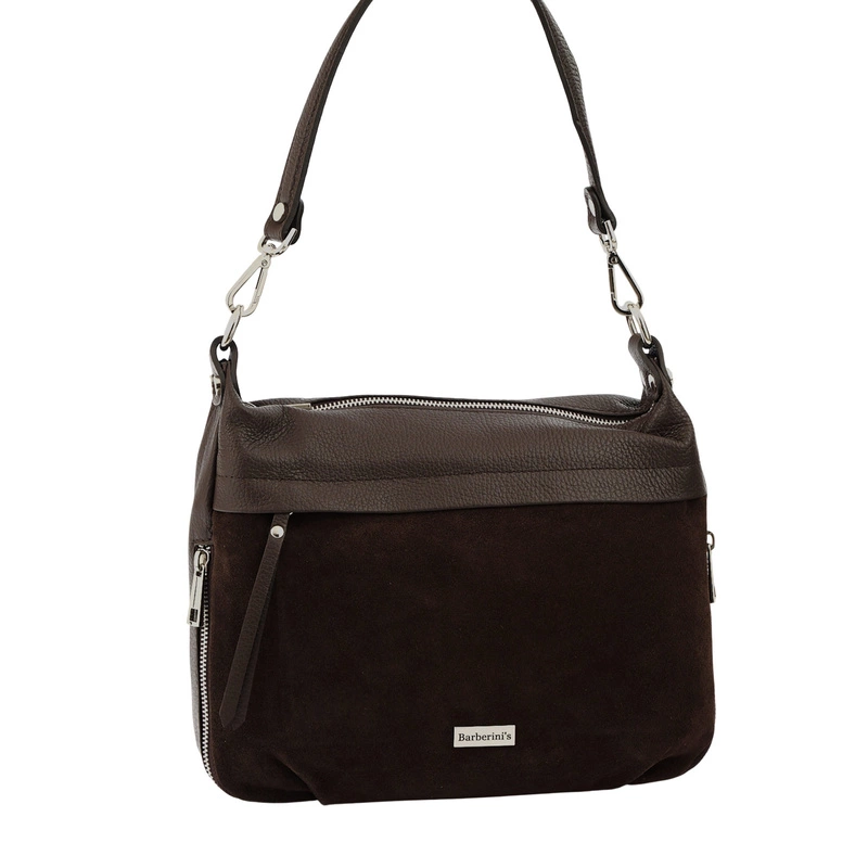 Skórzana torebka z zamszowym akcentem w kolorze ciemnego brązu - elegancja i funkcjonalność w jednym. Odkryj idealne połączenie stylu, wygody i praktyczności. Skórzana torebka z zamszowym akcentem to model stworzony dla kobiet ceniących klasykę w nowoczesnym wydaniu. Wykonana z wysokiej jakości skóry naturalnej, z przodem wykończonym miękkim, przyjemnym w dotyku zamszem, prezentuje się elegancko i ponadczasowo. To idealna propozycja zarówno do pracy, na spotkanie, jak i na co dzień – praktyczna, a zarazem pełna elegancji. Elegancka, ale jednocześnie praktyczna skórzana torebka z zamszowym akcentem doskonale sprawdzi się w każdej sytuacji – do pracy, na zakupy, spotkanie z przyjaciółmi czy weekendowy wyjazd. Pięknie komponuje się zarówno z klasycznymi stylizacjami biurowymi, jak i z luźnymi zestawami w stylu casual.