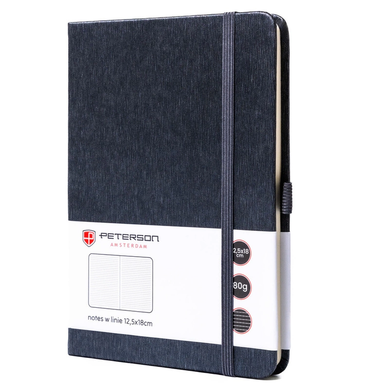 Szary notes w formacie B6 zadrukowany w linie, wyposażony w gumkę zamykającą - Peterson