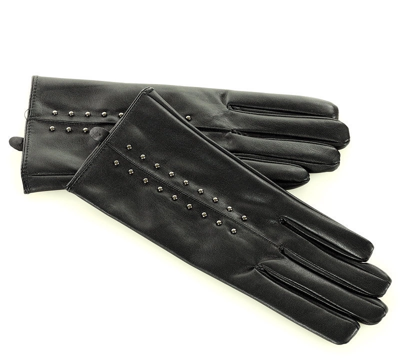 Klasyczne rękawiczki damskie w czarnym kolorze to praktyczny dodatek niezbędny jesienią i zimą. Charakteru dodają mu wykończenia w postaci ozdobnych dżetów. Rękawiczki damskie wykonane z eko skóry z ciepłym wykończeniem w środku. Ponadczasowy fason i kolor sprawi, że co roku będziesz po nie sięgać bardzo chętnie. Przez swoją uniwersalność będą również trafionym prezentem pomysłem na prezent dla mamy, siostry czy przyjaciółki.