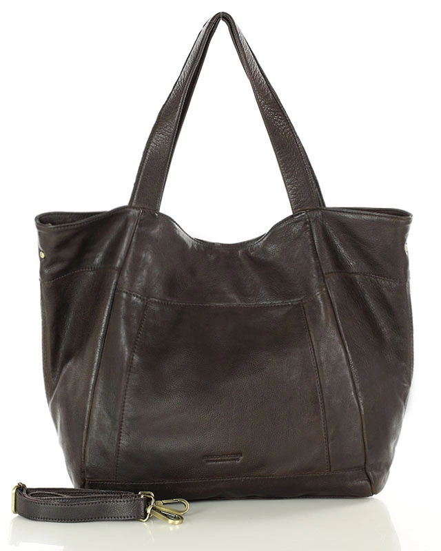 Skórzana torebka shopper na ramię - Praktyczna torebka w czekoladowym kolorze