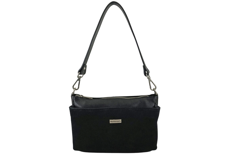 Wnętrze torebki: pojemna torebka listonoszka ze skóry i zamszu jest zasuwana, dzięki czemu zapewnia bezpieczeństwo przechowywanych rzeczy. Po bokach znajdują się dwie zewnętrzne kieszenie zamszowe, również zapinane na zamek, które pozwalają mieć najpotrzebniejsze drobiazgi zawsze pod ręką. Wnętrze torebki kryje główną komorę z małą zasuwaną kieszonką, idealną na klucze, dokumenty lub telefon. Pojemna torebka listonoszka ze skóry i zamszu posiada srebrne okucia, które subtelnie podkreślają elegancję torebki. Do zestawu dołączono dwa dopinane paski – krótszy, bez regulacji, do noszenia w dłoni lub na ramieniu (dł. 58cm, wys. 29cm, szerokość paska 2,5cm) oraz dłuższy, regulowany (maksymalna dł. 110cm, maksymalna wys. 56cm, szerokość paska 1,5cm), umożliwiający wygodne noszenie torebki w formie listonoszki.
