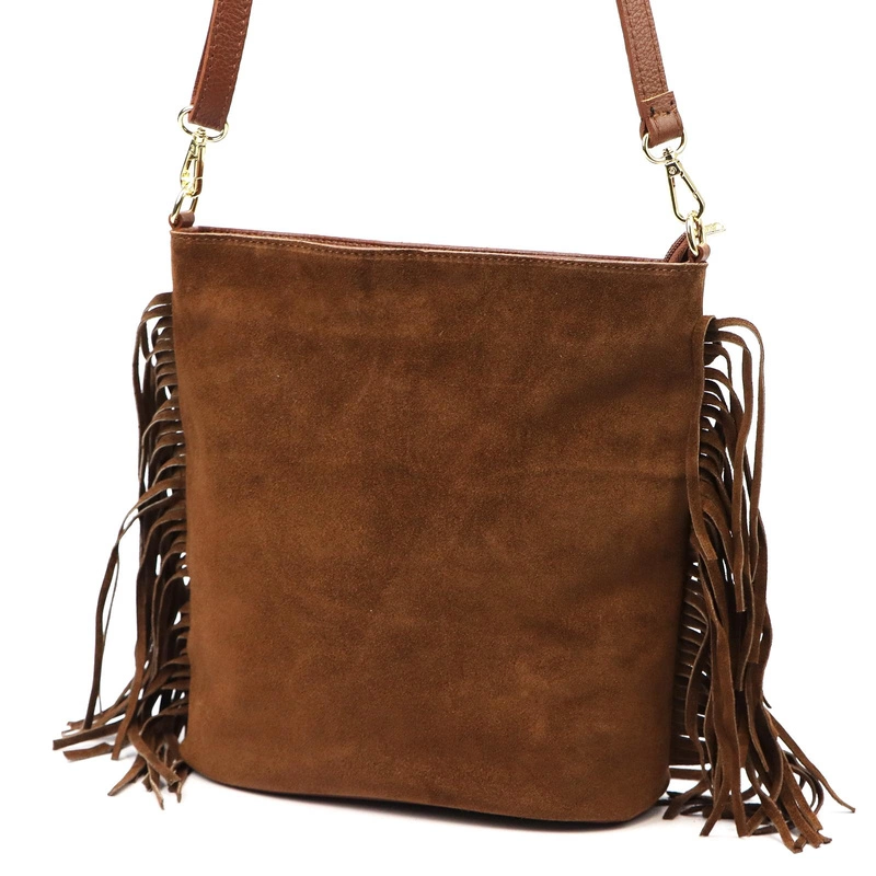 Vera Pelle damska listonoszka skóra naturalna zamszowa torebka z frędzlami