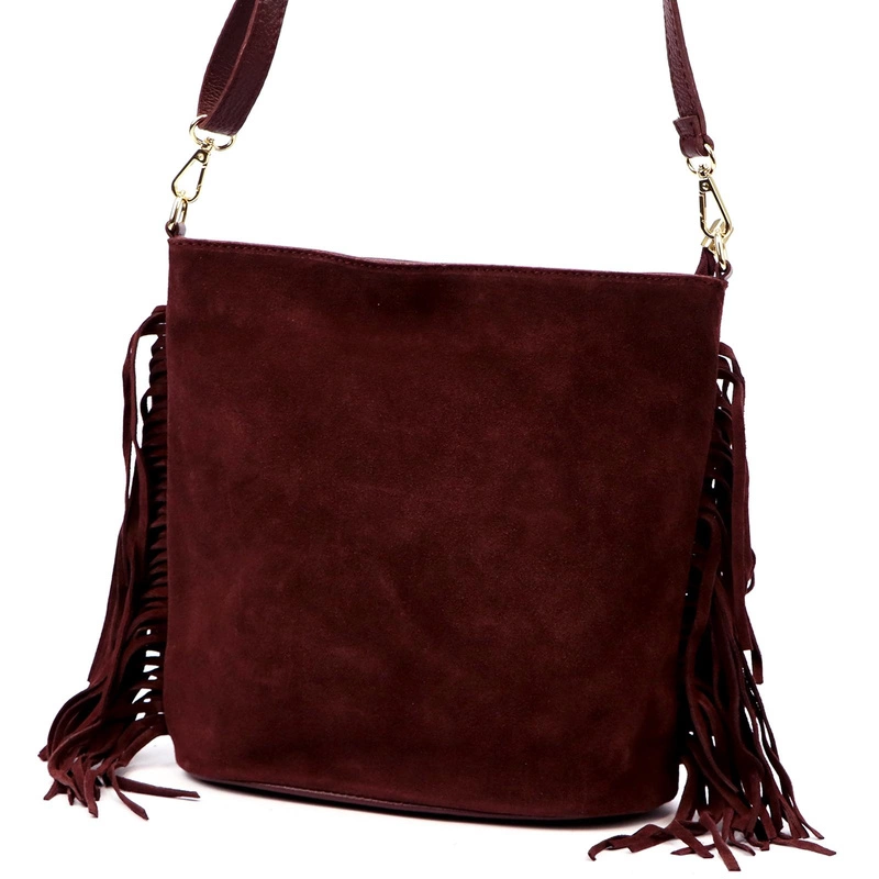 Vera Pelle damska listonoszka skóra naturalna zamszowa torebka z frędzlami