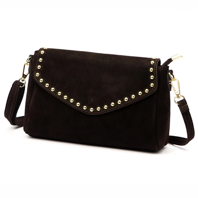 - Elegancka listonoszka Vera Pelle – kompaktowa i stylowa. Ta mała damska torebka marki Vera Pelle została wykonana z miękkiej naturalnej skóry zamszowej, dzięki czemu prezentuje się wyjątkowo elegancko i przyciąga wzrok subtelną fakturą.