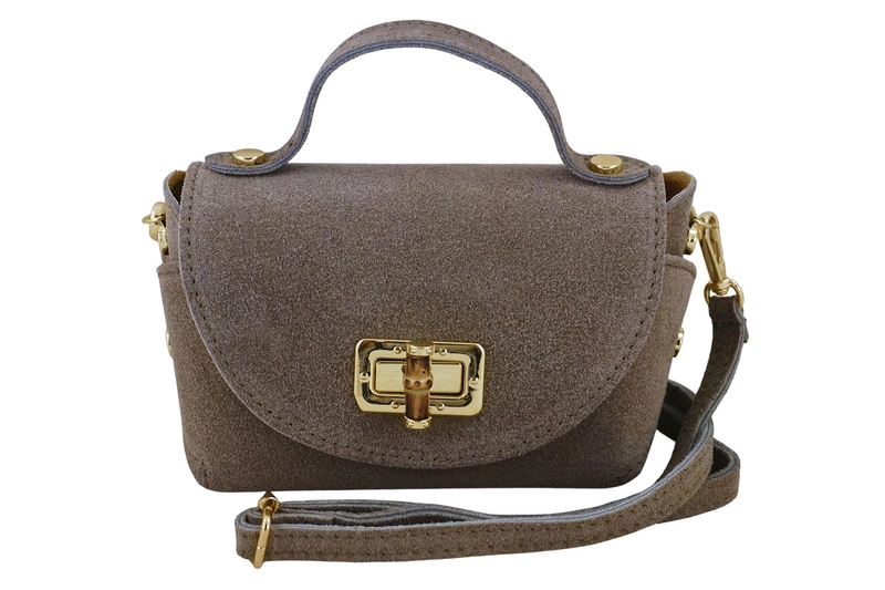 Mała torebka zamszowa wizytowa z ozdobnym zapięciem – Barberinis. Wykonana z naturalnej skóry zamszowej, zachwyca miękkością w dotyku i wyjątkową strukturą materiału. Jej głęboki odcień ciemnego beżu doskonale komponuje się zarówno na co dzień, jak i podczas wieczornych wyjść, gdy chcesz dodać swojej stylizacji wyrafinowania. Ozdobne bambusowe zapięcie na klapce to detal, który przyciąga uwagę i nadaje torebce niepowtarzalnego uroku, a subtelne złote elementy podkreślają elegancki charakter modelu. Elegancja, styl i ponadczasowa jakość - mała torebka zamszowa wizytowa to doskonały wybór dla kobiet ceniących jakość, wygodę i modowy minimalizm z nutą luksusu.