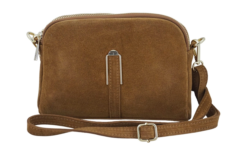 Mała torebka zamszowa wieczorowa w kolorze jasnego brązu została wykonana ze skóry naturalnej. Dodaj szyku każdej stylizacji z tą wyjątkową, skórzaną torebką na ramię. Wykonana z wysokiej jakości skóry zamszowej, zachwyca minimalistycznym designem i subtelną, złotą ozdobą na przodzie, która przyciąga spojrzenia i dodaje luksusowego charakteru. Klasyczny, minimalistyczny design pasujący do wielu stylizacji - mała torebka zamszowa wieczorowa to dodatek, który łączy w sobie elegancję, funkcjonalność i ponadczasowy styl. Stylowa, a zarazem praktyczna – ta torebka to idealny wybór na eleganckie kolacje, przyjęcia czy wieczorne spotkania. Doskonale sprawdzi się o każdej porze roku i w wielu sytuacjach, idealna jako dodatek do casualowych stylizacji.