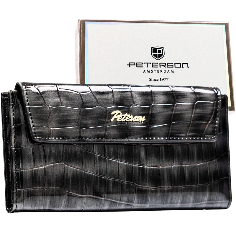 Szary portfel damski ze skóry ekologicznej zamykany na zatrzask - Peterson
