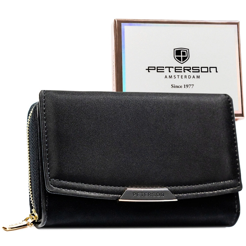 Portfel damski ze skóry ekologicznej w czarnym kolorze wyposażony w system RFID - Peterson
