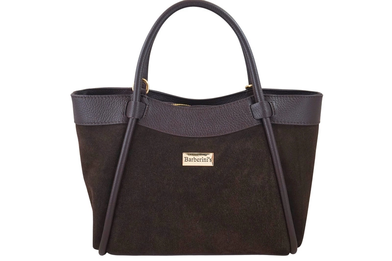 Elegancka torebka ze skóry zamszowej - Brązowa ciemna