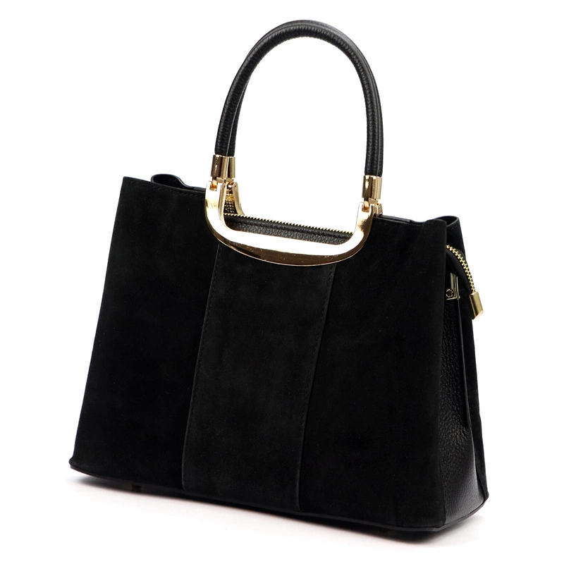 Torebka Vera Pelle to model stworzony z myślą o kobietach, które cenią klasyczny styl, funkcjonalność i najwyższą jakość wykonania. Wykonana z delikatnej naturalnej skóry zamszowej, zachwyca miękką fakturą i subtelnym, eleganckim wyglądem. Jej średni rozmiar sprawia, że jest idealnym towarzyszem zarówno na co dzień, jak i na bardziej formalne okazje. Całość dopełniają złote okucia, które dodają torebce szyku i ponadczasowego charakteru.