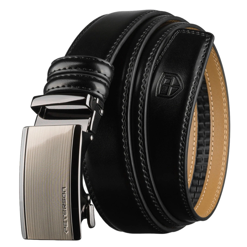 Czarny pasek męski z automatyczną klamrą wykonany ze skóry naturalnej - Peterson